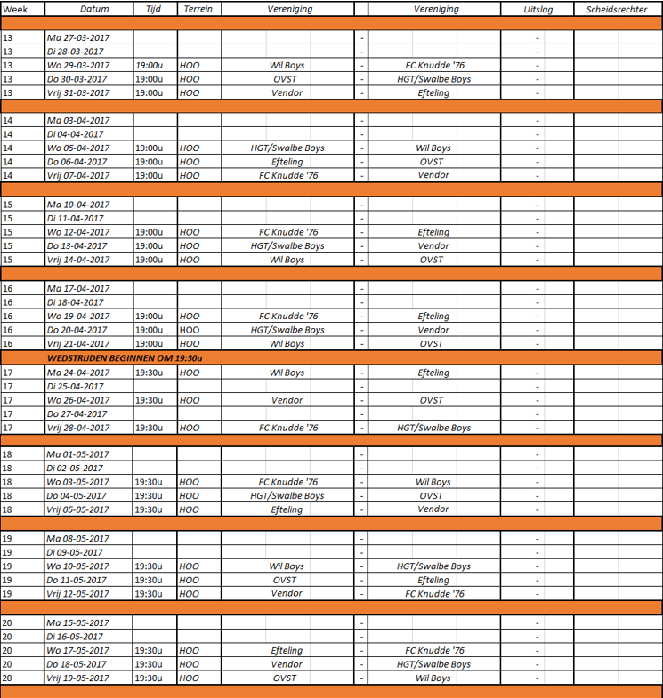 Wedstrijdschema 2017